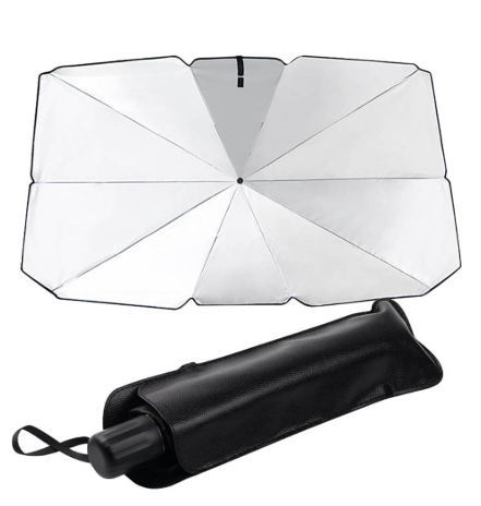 Car windshield sunshade umbrella is made of environmentally safe and high-quality steel bone material, with heat insulation and UV block.